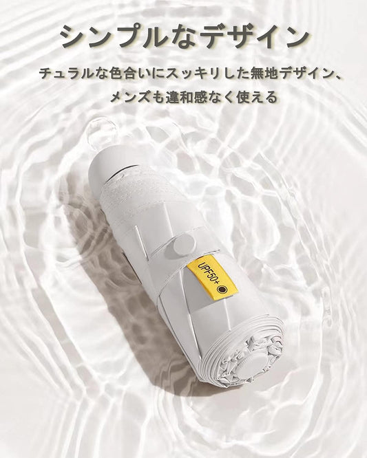 Milky White Colour Compact Travel Foldable Pocket Umbrella 5 Ribs Round Handle Anti-UV Lightweight